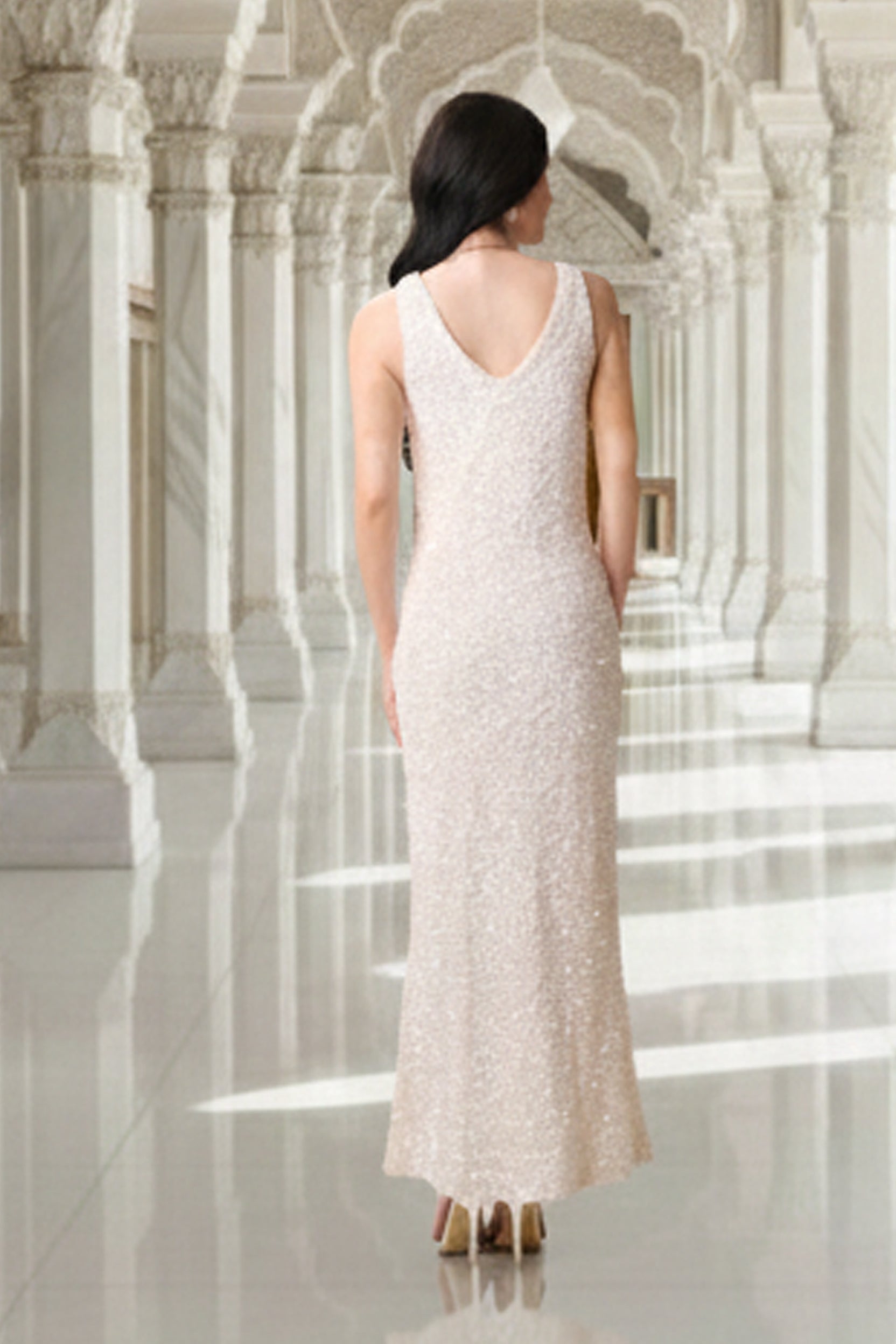 East India Company - Celeste , Sequin V-Neck Evening Gown
