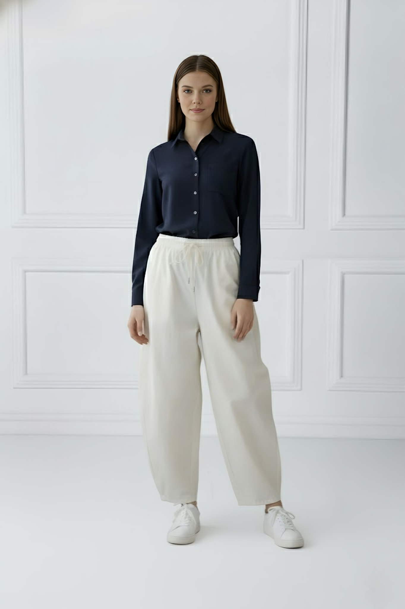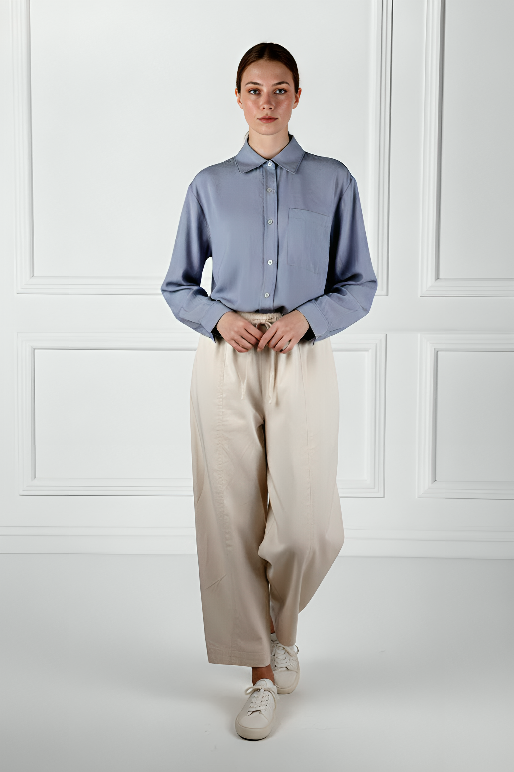 A relaxed breezy shirt blouse crafted effortless, featuring a soft drape with timeless appeal