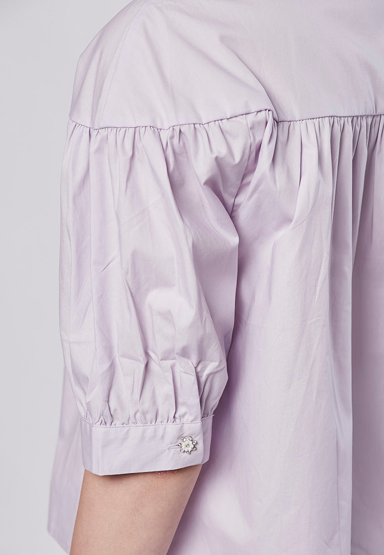 PAYTON - Collared Babydoll Shirt Blouse with Diamante Button