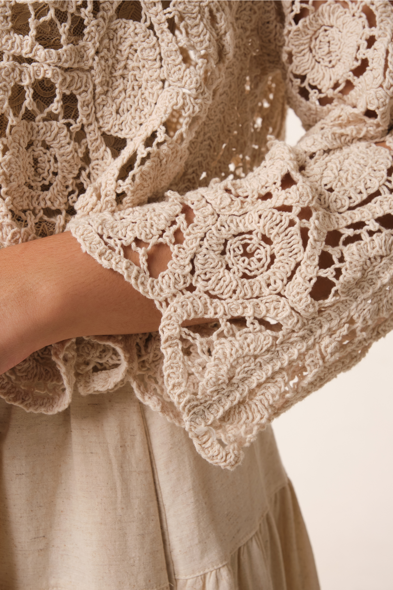 Lightweight and breathable, this cropped cotton crochet cardigan is handcrafted from soft, natural homespun cotton. Its open-front design and versatile silhouette make it perfect for layering over dresses or casual outfits, adding effortless texture and artisanal charm to any look.
