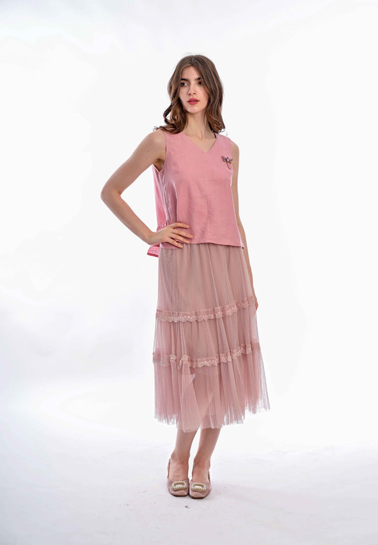 Somerset Bay - CHARLOTTE V NECK SLEEVE LESS LINEN BLOUSE